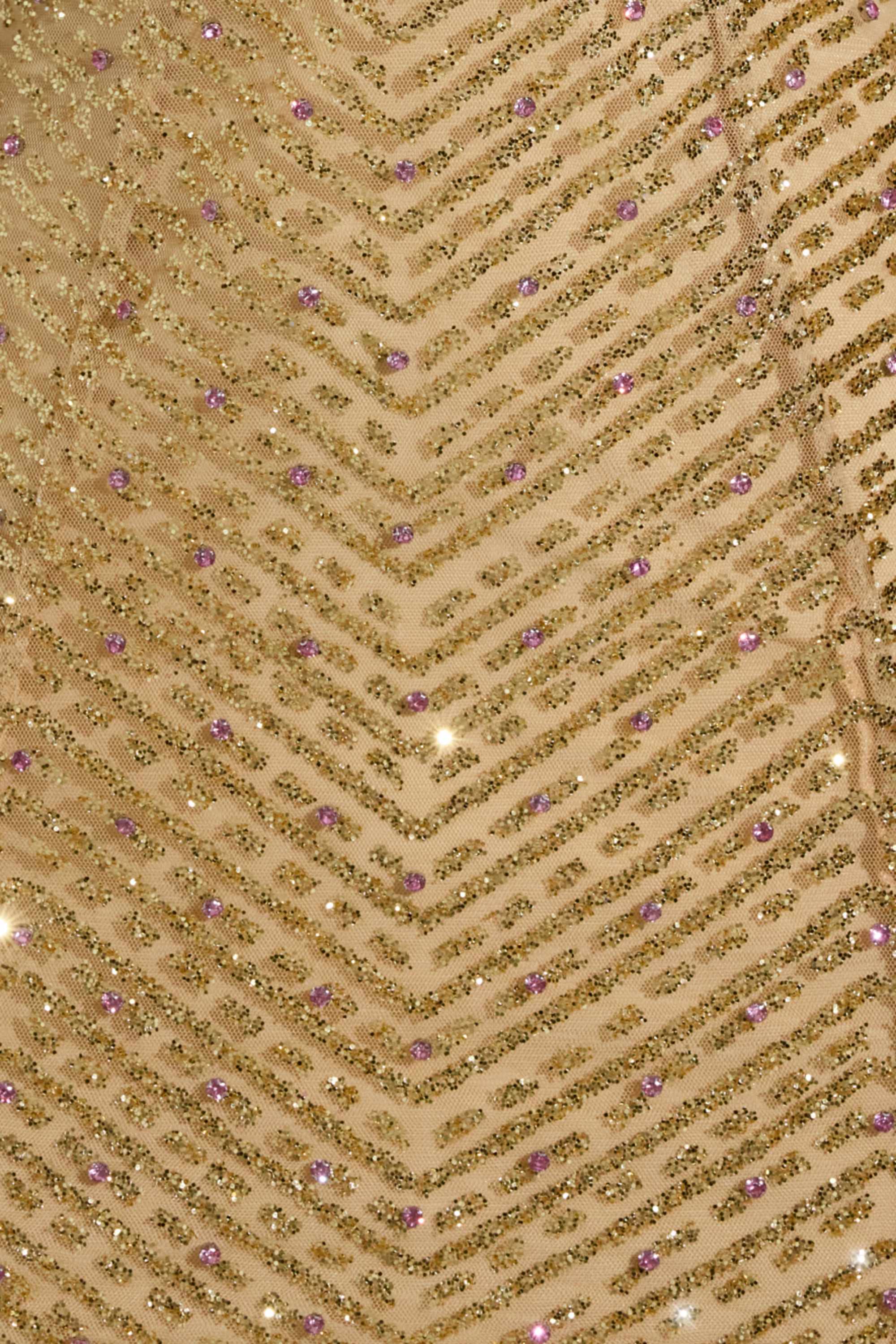 • Made from premium glittered mesh with a soft, stretchy jersey lining. Fully lined.