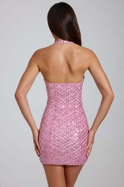 Embellished Halterneck Mini Dress in Pink