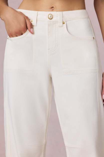 Mid-Rise Barrel-Leg Jeans in Ecru Wash