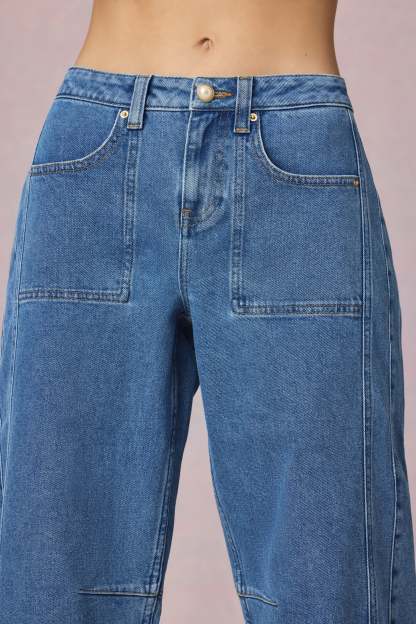 Denim, done our way. Blending timeless style with modern details, the Bobbi jeans are crafted from premium denim to a barrel-leg silhouette for a relaxed yet structured look. They’re enhanced with shaping seam detailing, a faux-pearl button at the front, and subtle branding on the back pockets. The mid-rise fit means they’ll pair perfectly with your favourite cropped tops.