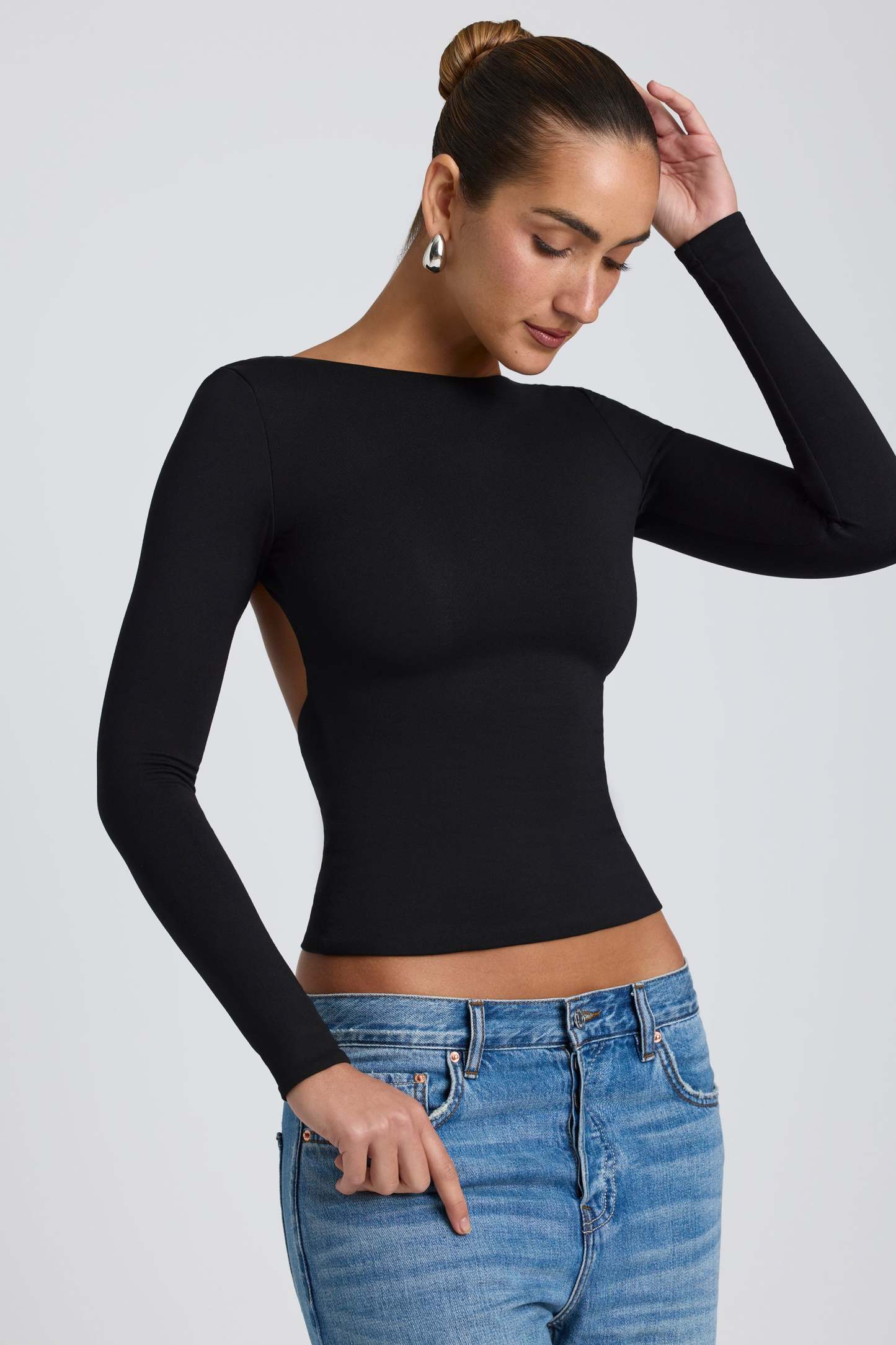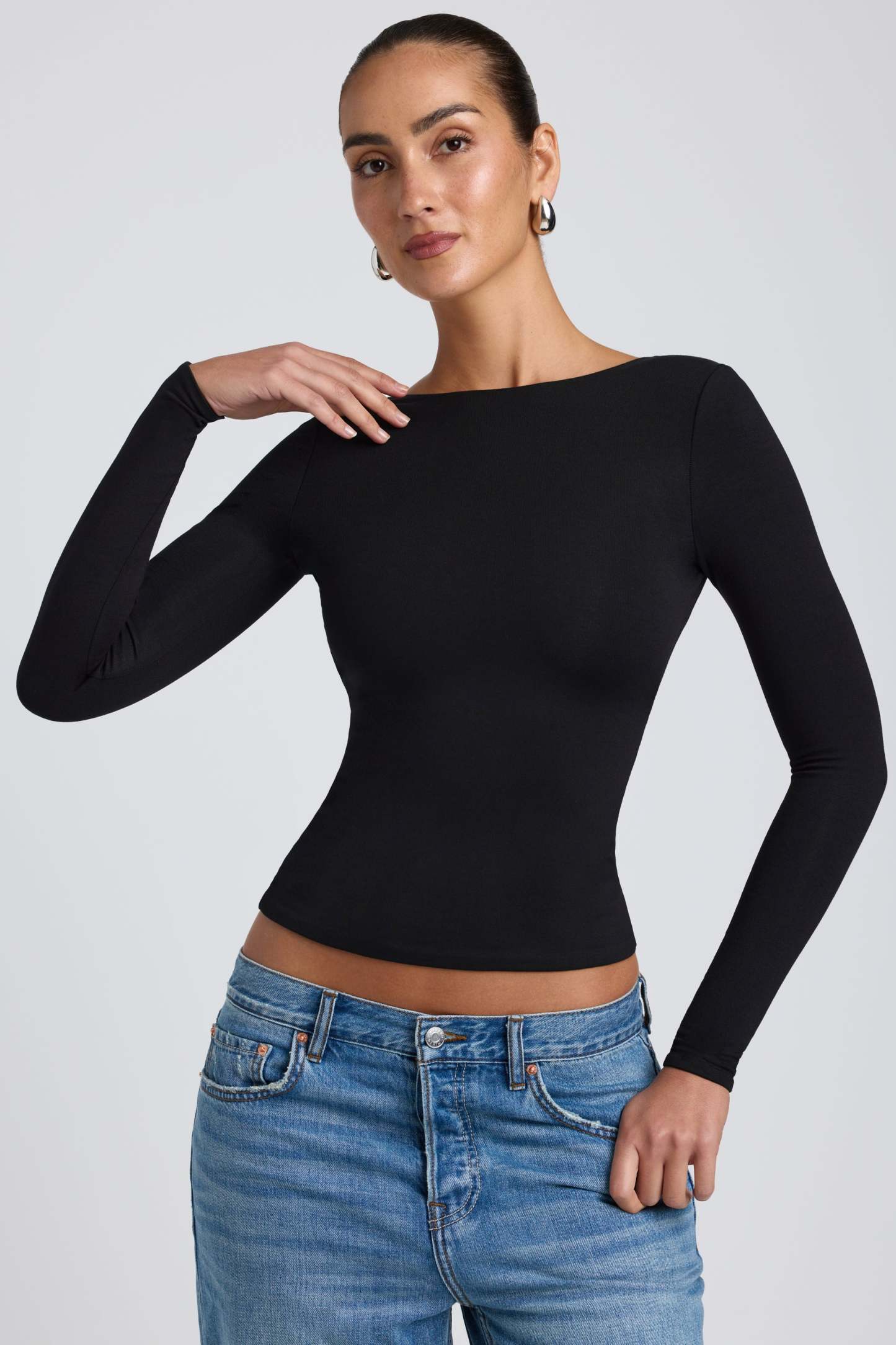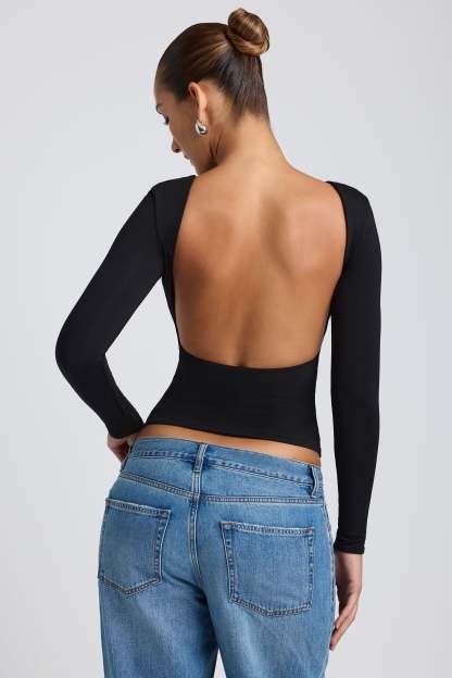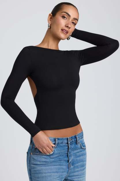 Contemporary silhouettes. Designed in our body-sculpting, smoothing Modal fabric in two versatile colorways, the Elli top is an everyday basic. Minimal and effortless, Elli features a high neckline, long sleeves, and a low, open back. Biodegradable and compostable, our TENCEL™ Modal material is sourced sustainably from beechwood trees.