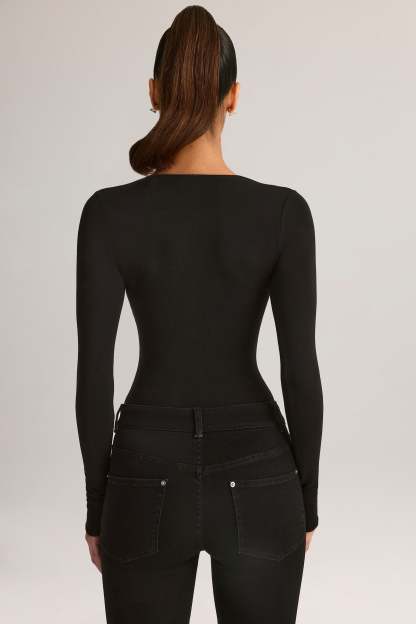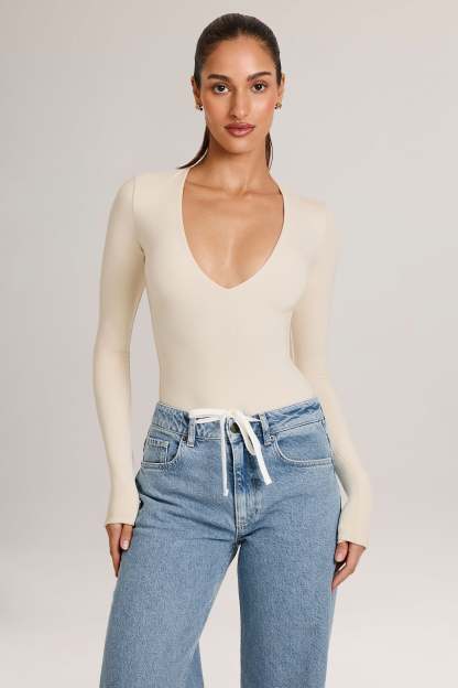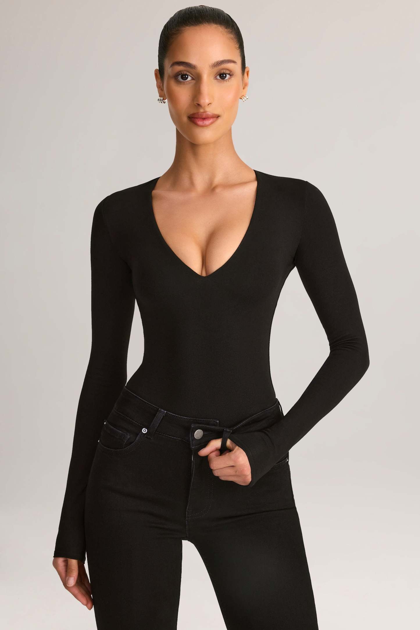 Seamless styling. Perfect for layering under your favourite skirts, trousers or jeans, the Elodie bodysuit is cut to a sculpting bodycon silhouette. It’s framed with fitted long sleeves and a plunging neckline, and crafted from our premium jersey made with TENCEL™ Modal fibres that are naturally soft and smooth to the touch.