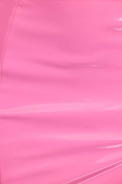 High shine, light vinyl fabric (Shell: 50% Polyurethane, 45% Polyester, 5% Elastane, Lining: 90% Polyester, 10% Elastane). Fully lined. Please read the wash instructions.