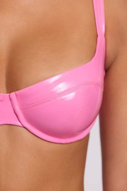 High shine and high impact, the Estelle bralette is designed in our premium light vinyl fabric and fully lined for a comfortable fit. Featuring adjustable shoulder straps and supportive underwired cups, Estelle is complete with a hidden zipper on reverse for easy closure.