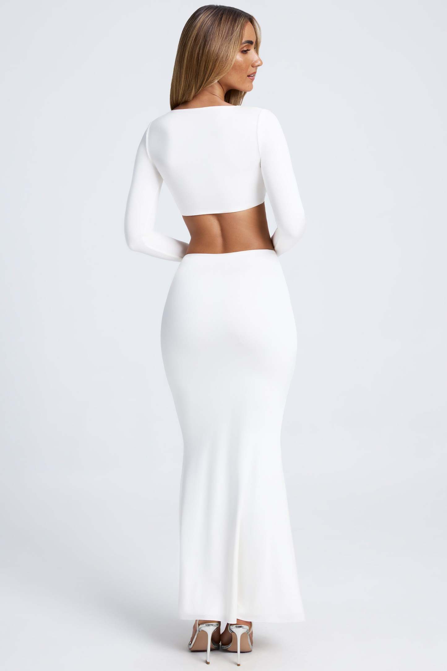 Minimalism meets maximalism with the Adena maxi skirt. An elevated take on everyone’s favorite style, it’s crafted from soft acetate jersey with a touch of stretch and cut to a fishtail silhouette with a V-shaped waistband that creates a stunning hourglass shape. It’s elevated with immaculate ruching at the waist and custom-developed hardware tipped with lustrous gemstones.