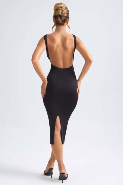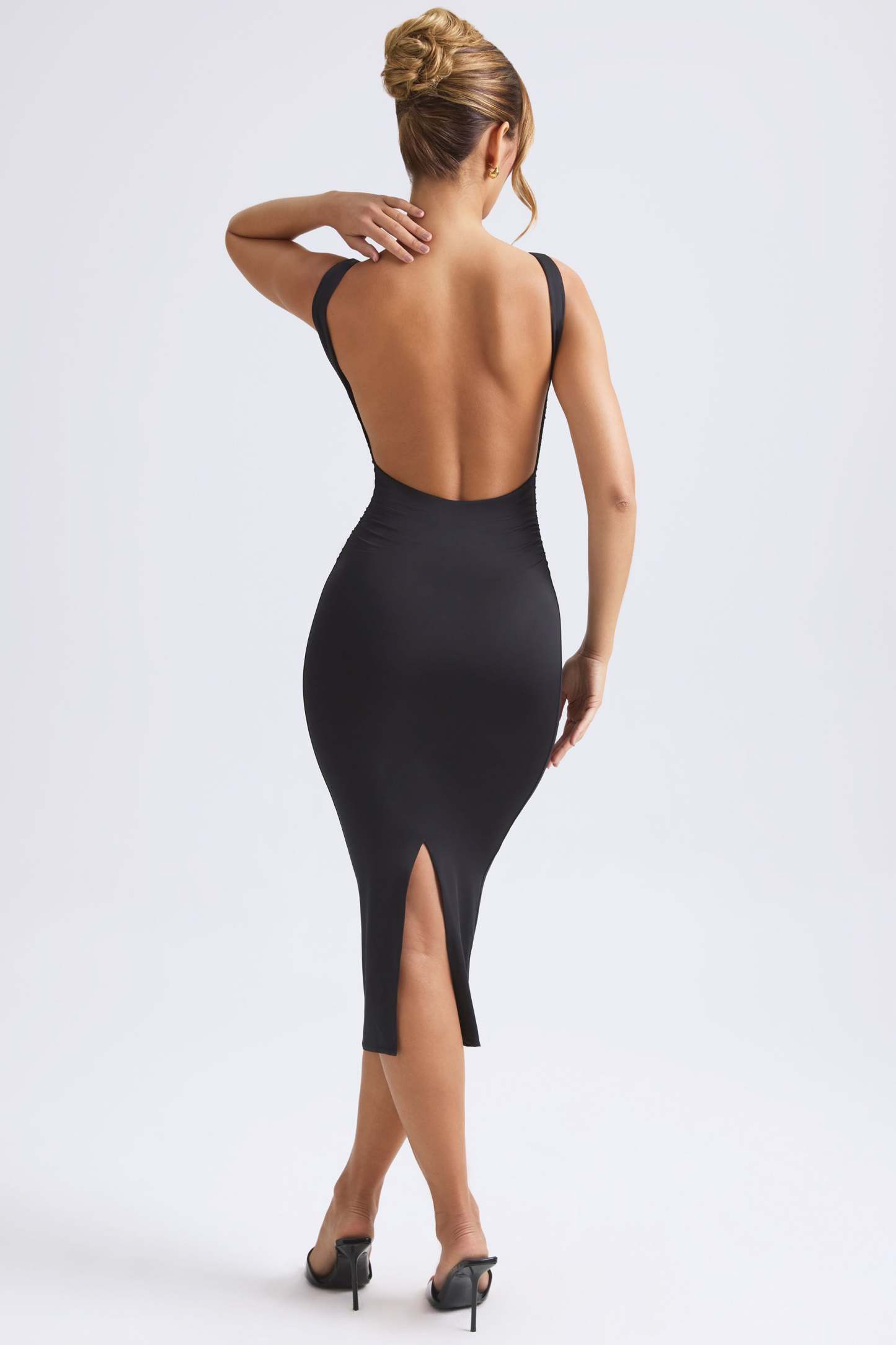 Minimalism at its finest. Perfect for day-to-night events, the Grainne midaxi dress is crafted from slinky stretch jersey to a bodycon silhouette with a universally flattering high boat neck. It’s enhanced with perfectly placed ruching at the waist, a sultry low back, and a center back split for ease of movement.