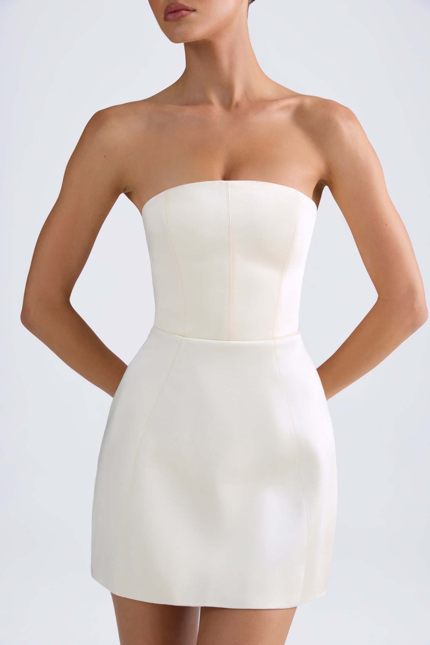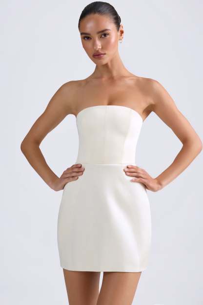 Bandeau Structured Tulip Mini Dress in Ivory
