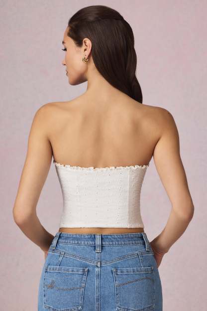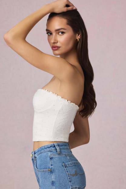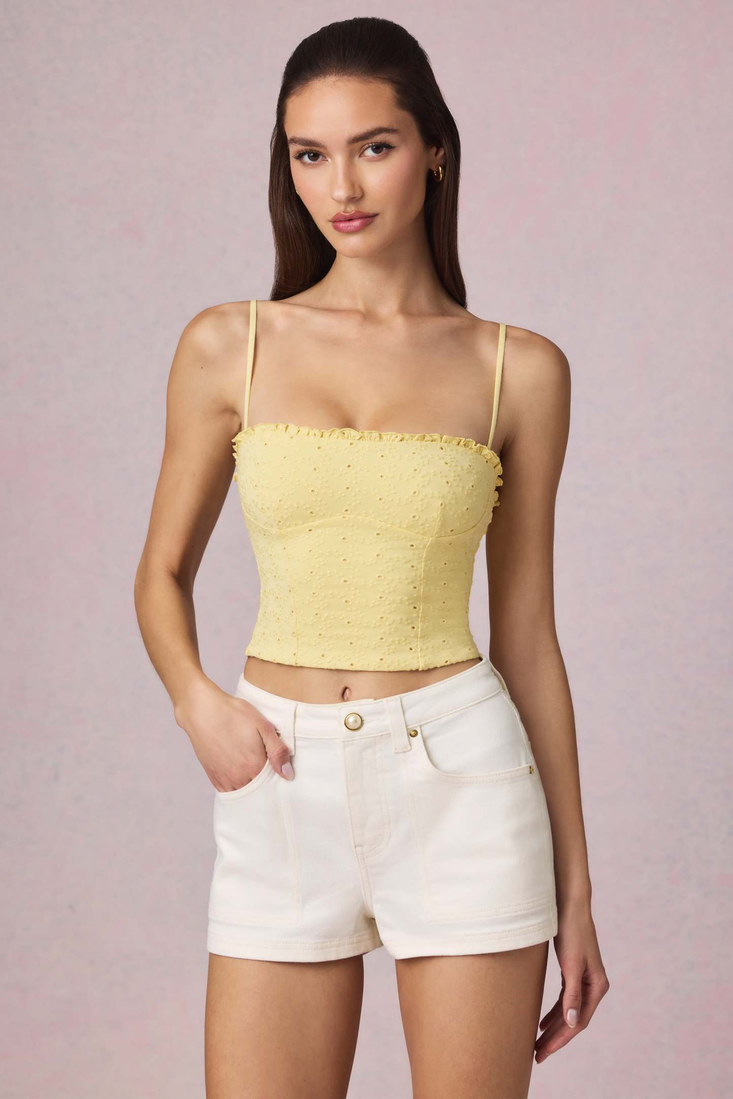 New staples, dreamy textures. Perfect for styling with your favourite denim, the Hania camisole top is crafted from premium cotton broderie anglaise with a touch of stretch for comfort. It features removable straps for versatile styling and is traced with delicate frill detailing at the front and back.