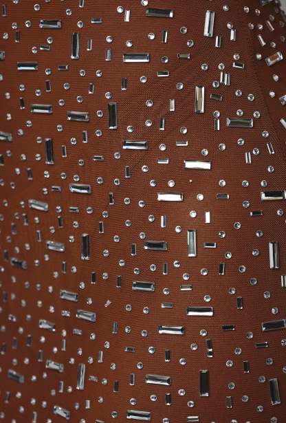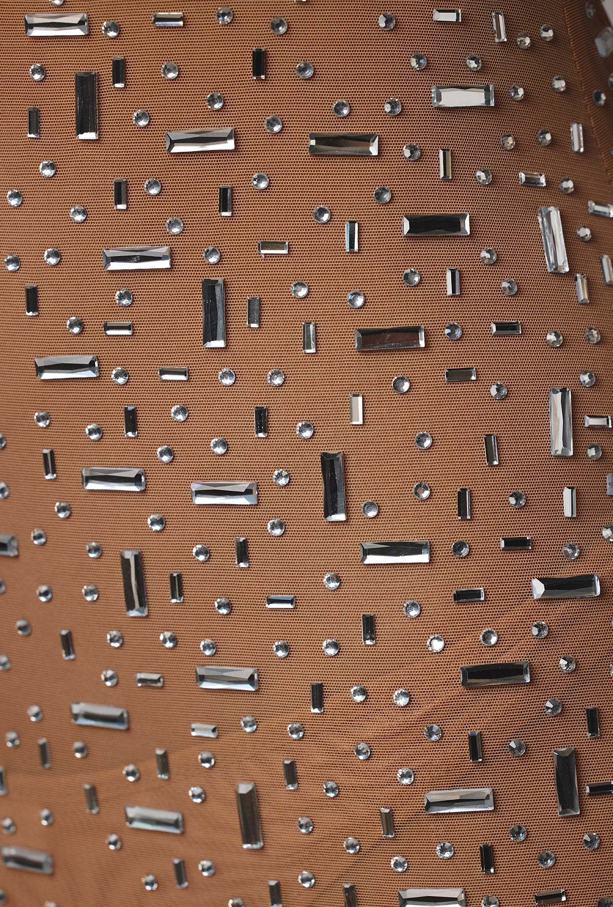 Single layer 20D mesh fabric with delicate hotfix embellishment throughout (85% Polyester, 15% Elastane). Unlined and sheer • we recommend styling with our Oh Polly Intimates range. This garment contains delicate artisanal hand embellishment that may become loose overtime. Additional embellishment has been provided for repairs.