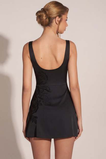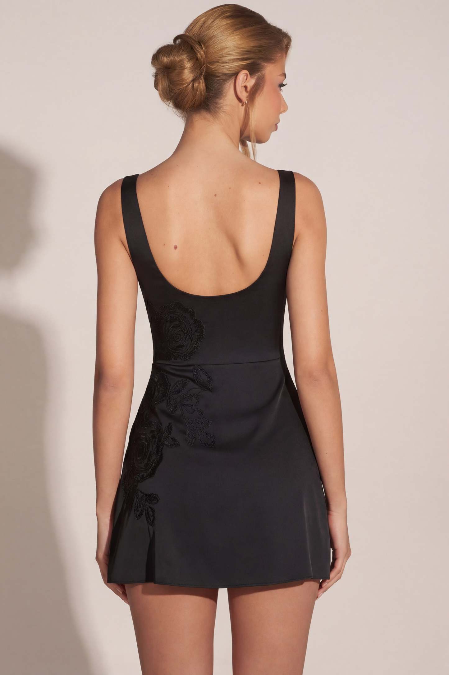 Stand out at every event with the Jacelyn mini dress. Cut to a scoop neckline and adorned with delicate floral embellishments, this dress is designed to make an impact. Crafted from our premium satin fabric in a flirty A-line silhouette, it brings effortless glamour to your next festive occasion.