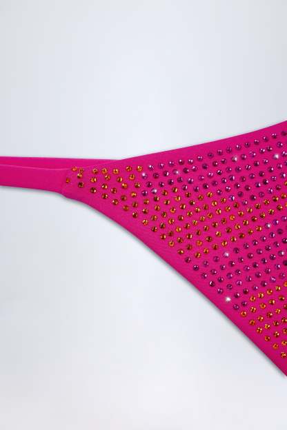 Sparkle poolside with the Jalama bikini bottoms. Crafted from our premium stretch-jersey swim fabric with a signature second-skin fit, they’re saturated with scores of HOTFIX embellishments that glitter in the sunlight. Continuing the statement feel, they’re cut to a high-leg silhouette with minimal thong back coverage.