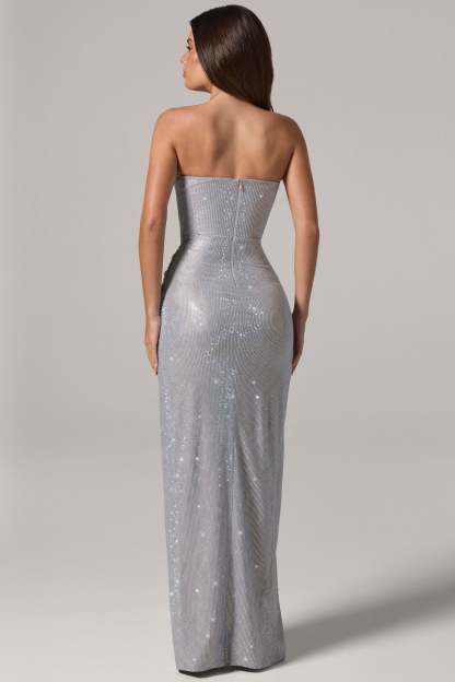 Dancefloor-ready style starts with the Zara mini dress. Cut to a body-hugging silhouette, it features a bandeau cowl neckline and a draped overlay over the hips for flattering movement. Crafted from premium mesh and adorned with all-over HOTFIX embellishments, it is made to turn heads from every angle. Pair with some heels or a faux-fur bolero for a show-stopping night-out look.