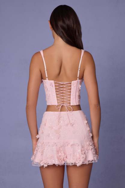 Embellished Mid-Rise A-Line Mini Skirt in Soft Pink