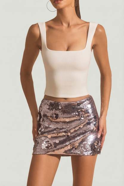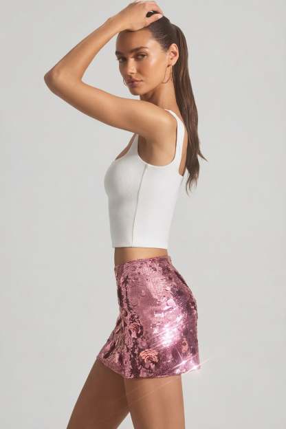 Make good outfit decisions. Made for after-dark styling, the Lunara mini skirt is fully embellished with an assortment of tactile three-dimensional sequins that catch the light. Crafted from premium stretch mesh for a universally flattering bodycon fit, it features a clean fitted waistband for easy styling with your favourite tee or tank.