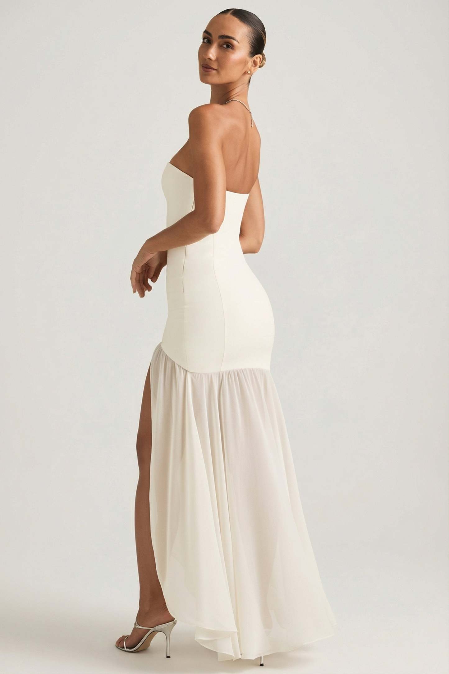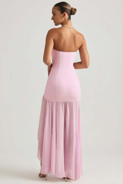 Glamour in every step. Guaranteed to turn heads, the Melina maxi dress is crafted from premium chiffon with a figure-hugging strapless bodice and sheer asymmetric skirt. It’s elevated with contouring seams at the front and back, cut to a universally flattering fishtail silhouette, and complete with a thigh-high front split.