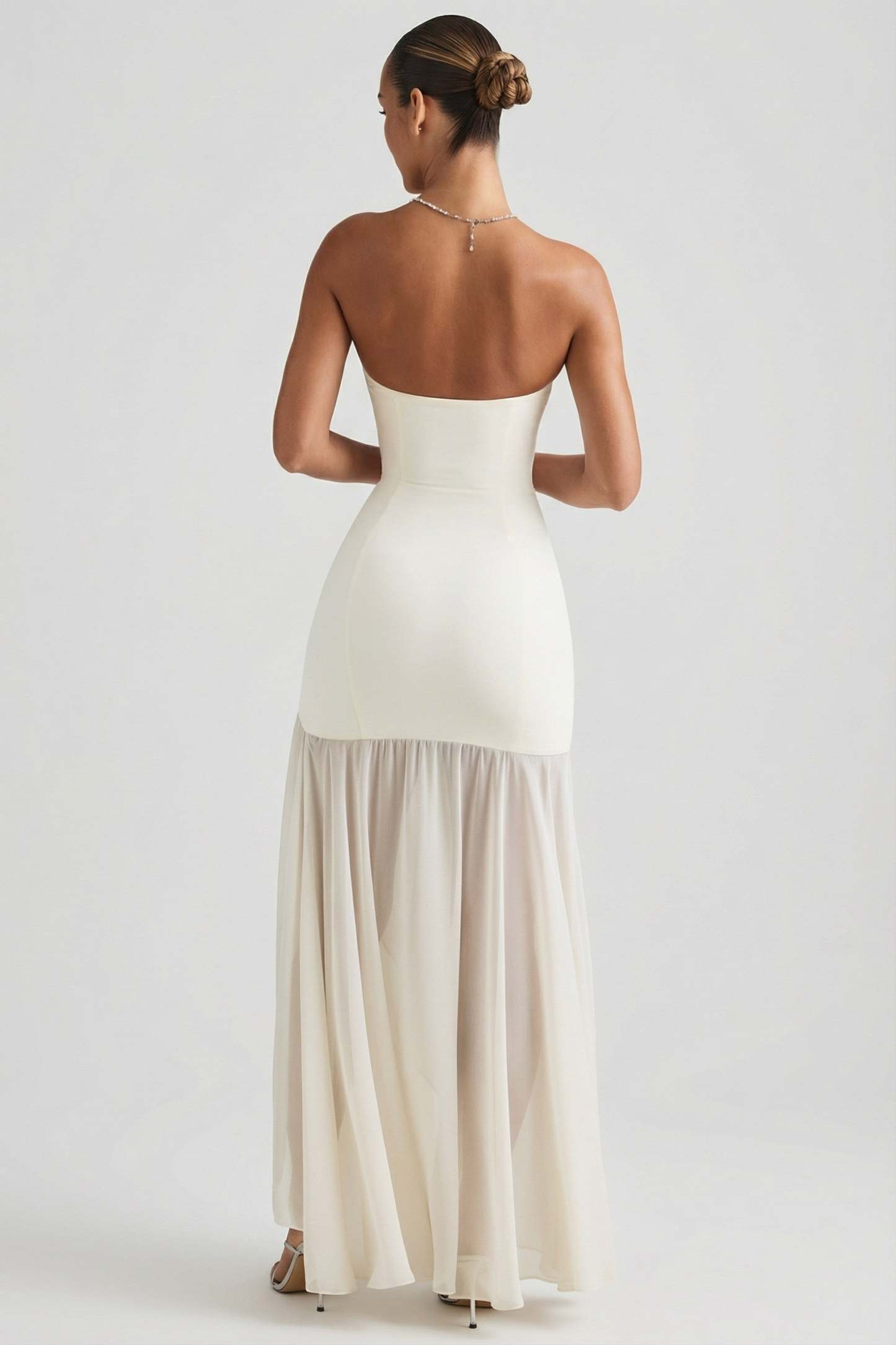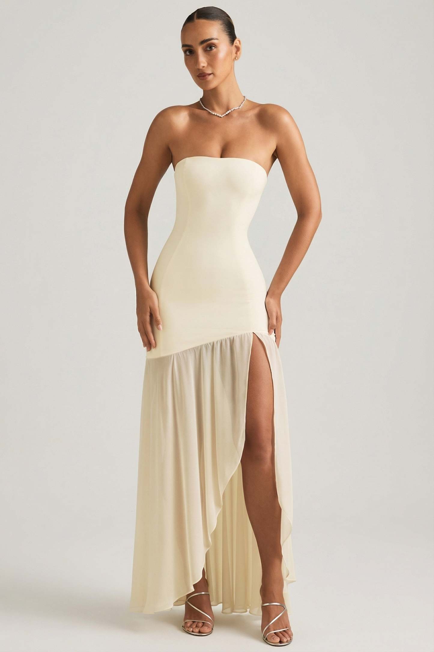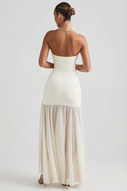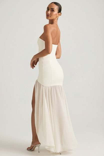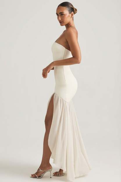 Asymmetric Strapless Fishtail Maxi Dress in Ivory