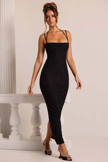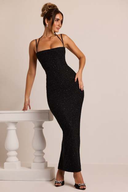 Enchanting evenings in Monte Carlo. Lovingly crafted by our team of in-house ateliers to create a memorable evening look, the Monte Carlo maxi dress features delicate hand embellished beading throughout. Complete with a bust-flattering cowl neckline, narrow split on reverse and adjustable multi strap detailing.