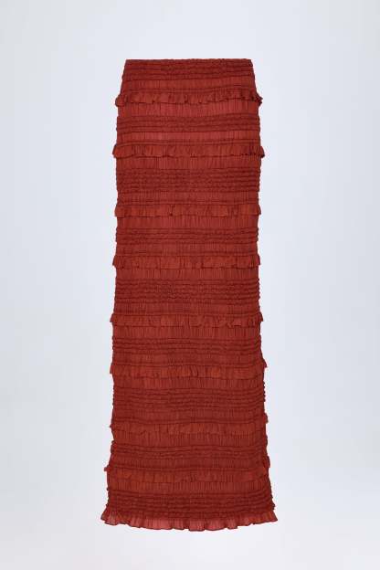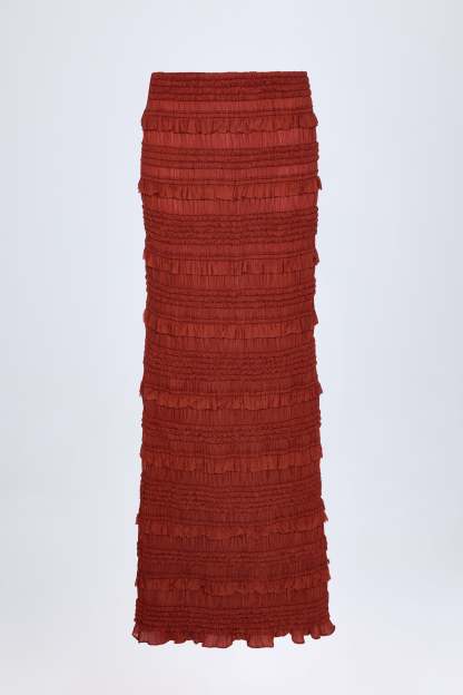 Perfect for elevating your festival or holiday looks, the Naima maxi skirt is crafted from our premium, custom-designed textured mesh, brought to life with tonal ruffle trims. It’s cut for a universally flattering mid-rise silhouette with a comfortable elasticated waistband.
