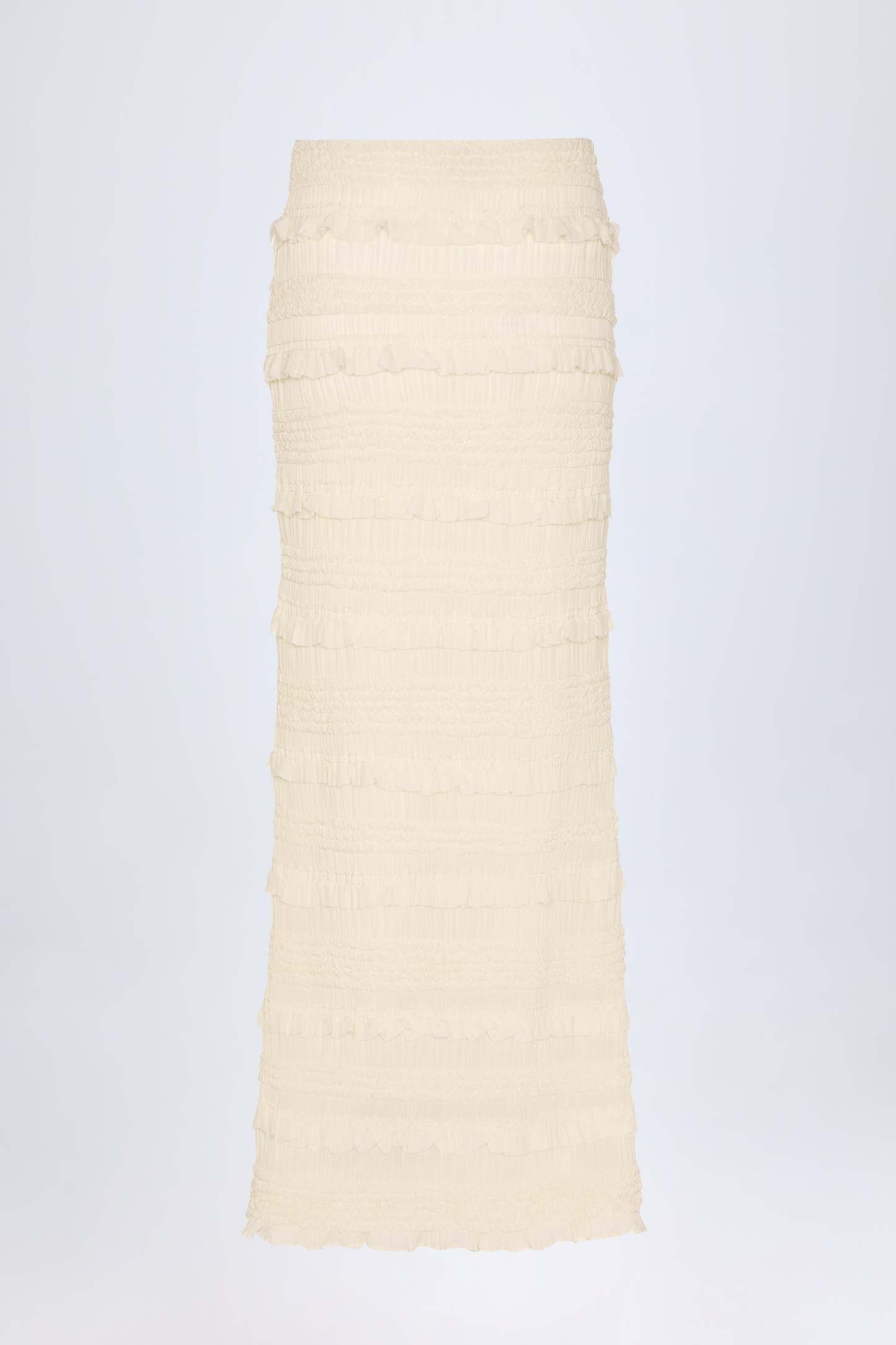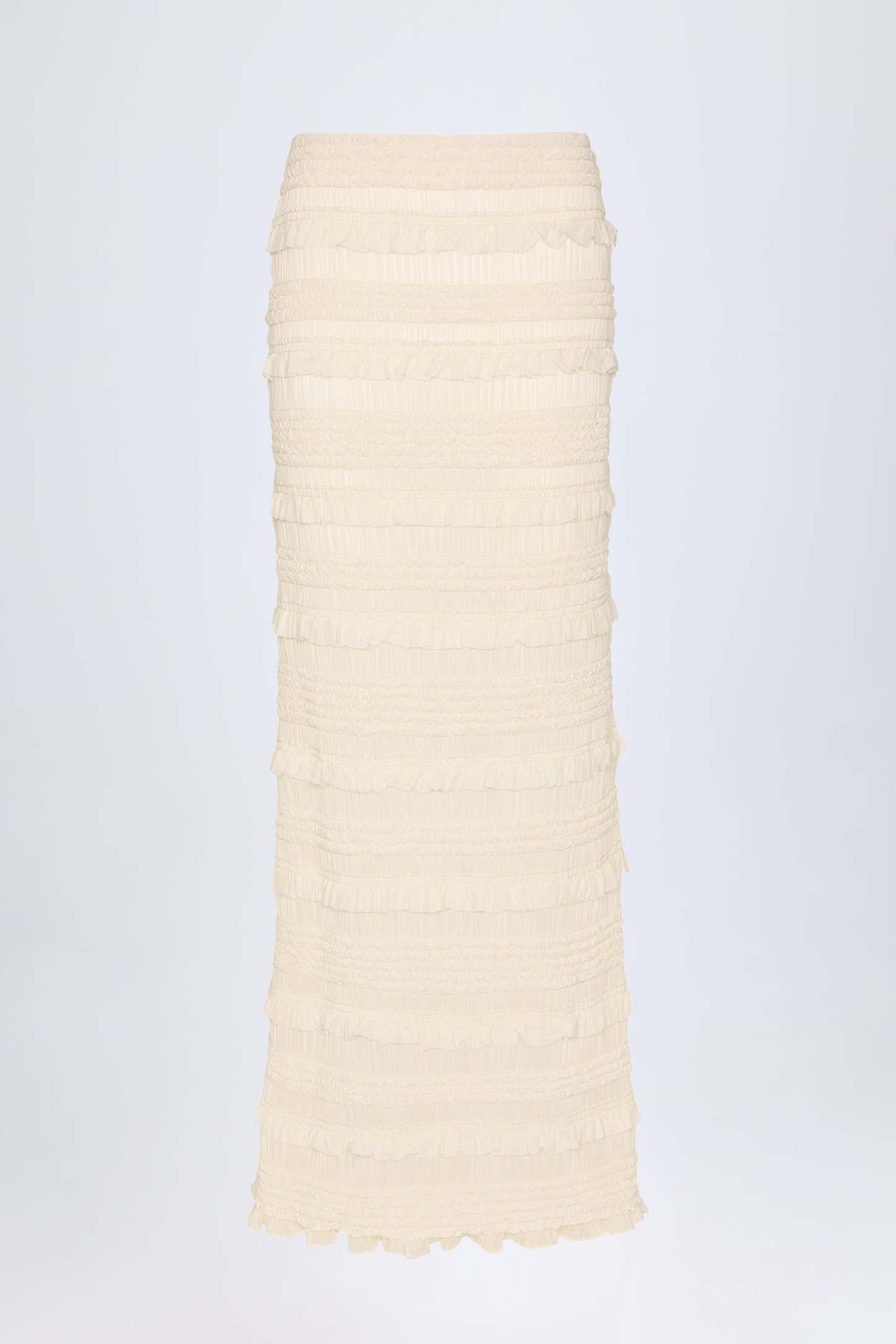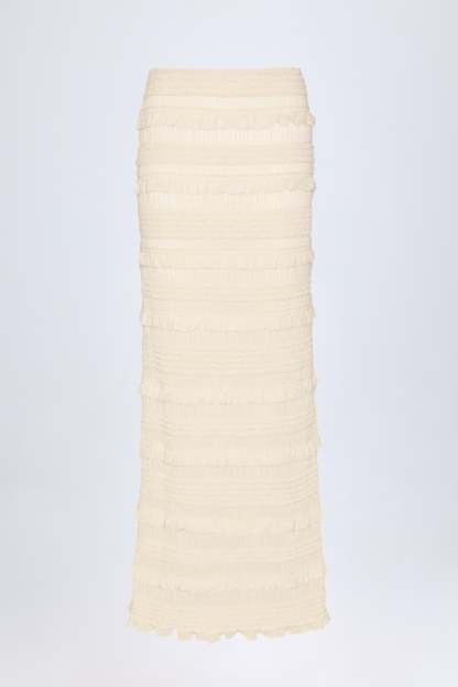 Ruffled Mid-Rise Maxi Skirt in Ivory