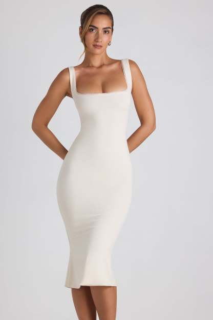 Modal Lace-Trim Midaxi Dress in Ivory
