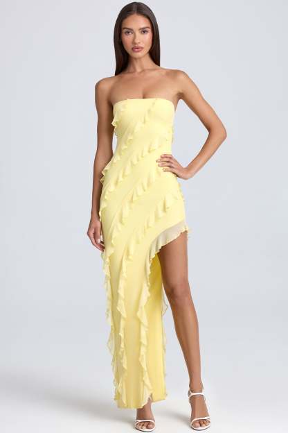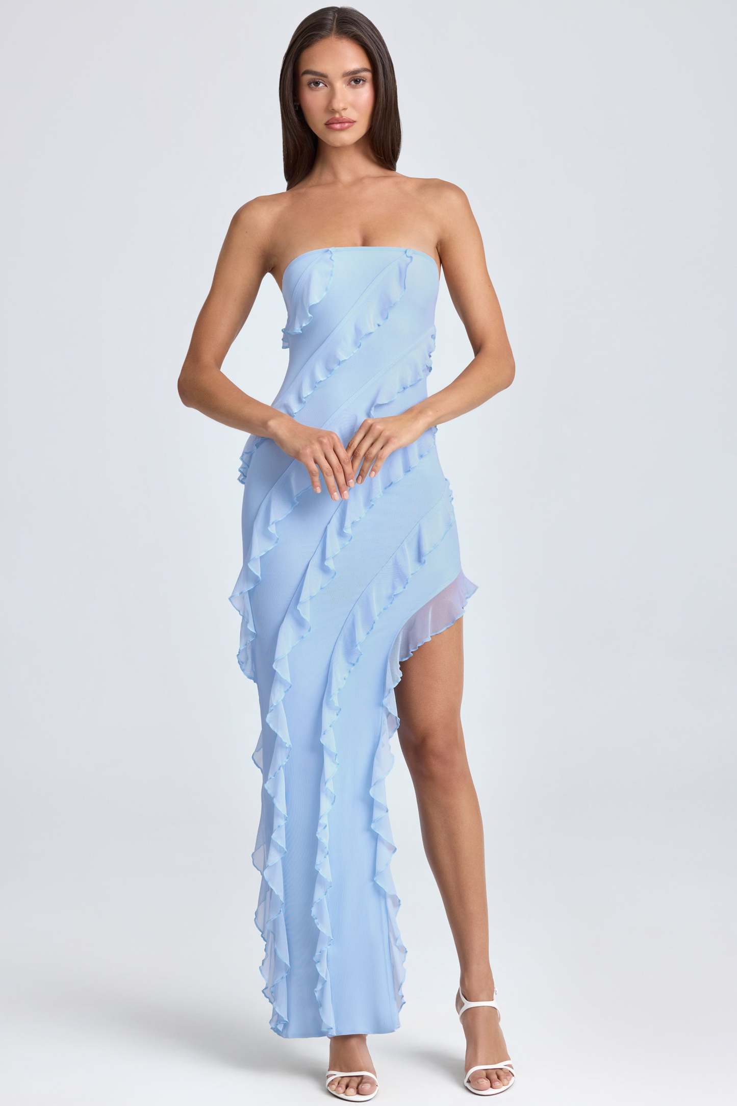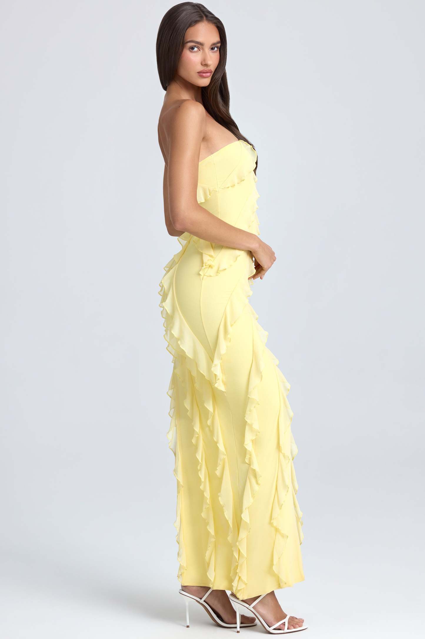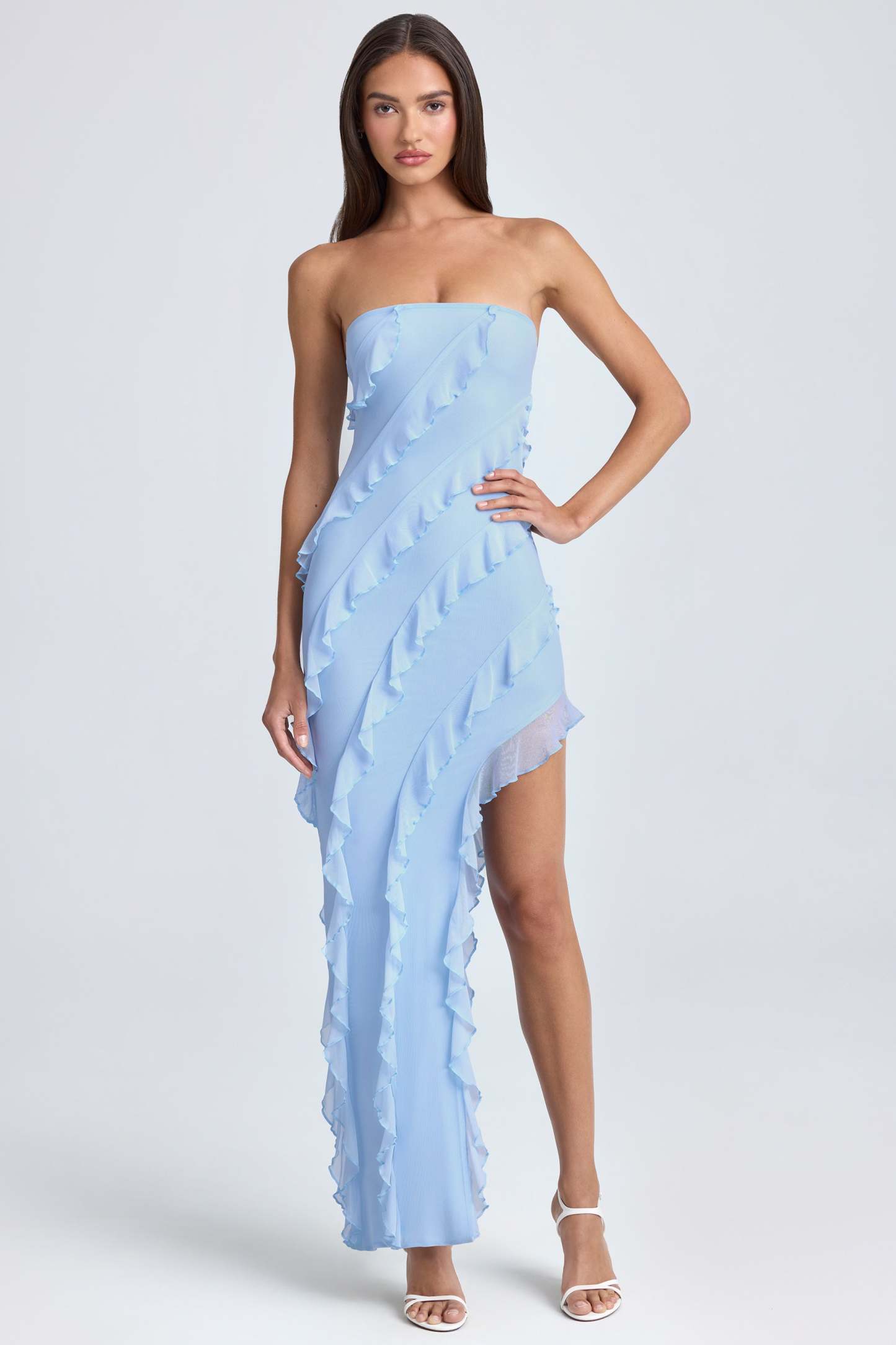 Taking inspiration from Italian love stories, Nevali is a stand out style. Designed in our premium, dual layered mesh that’s soft against the skin and smooths your silhouette, Nevali features a bandeau neckline that exposes your decolletage. Cut to a maxi length with an asymmetric hemline, Nevali is adorned with romantic ruffle detailing throughout the design ensuring that standing out won’t be a problem. Dramatic ruffling, a maxi length and statement colourways ensure that Nevali will be your go-to style for effortlessly glamorous evening wear.