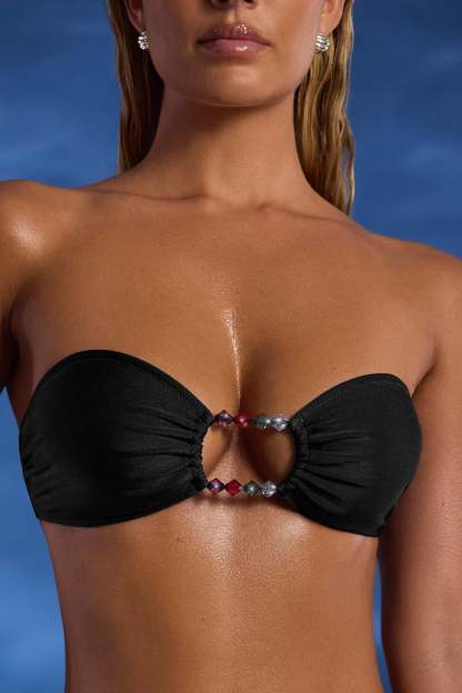 Stay on island time with the Praslin bikini top, crafted from our premium stretch-tricot swim fabric to a classic bandeau silhouette, perfect for minimising tan lines on sun-drenched days. It’s elevated with a rounded front cut-out detailed with faceted beads and features internal silicone tape for enhanced support and hold.