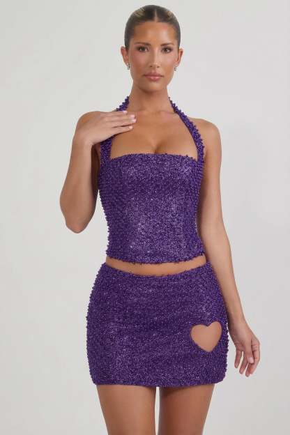 Embellished Heart-Detail A-Line Micro Mini Skirt in Purple