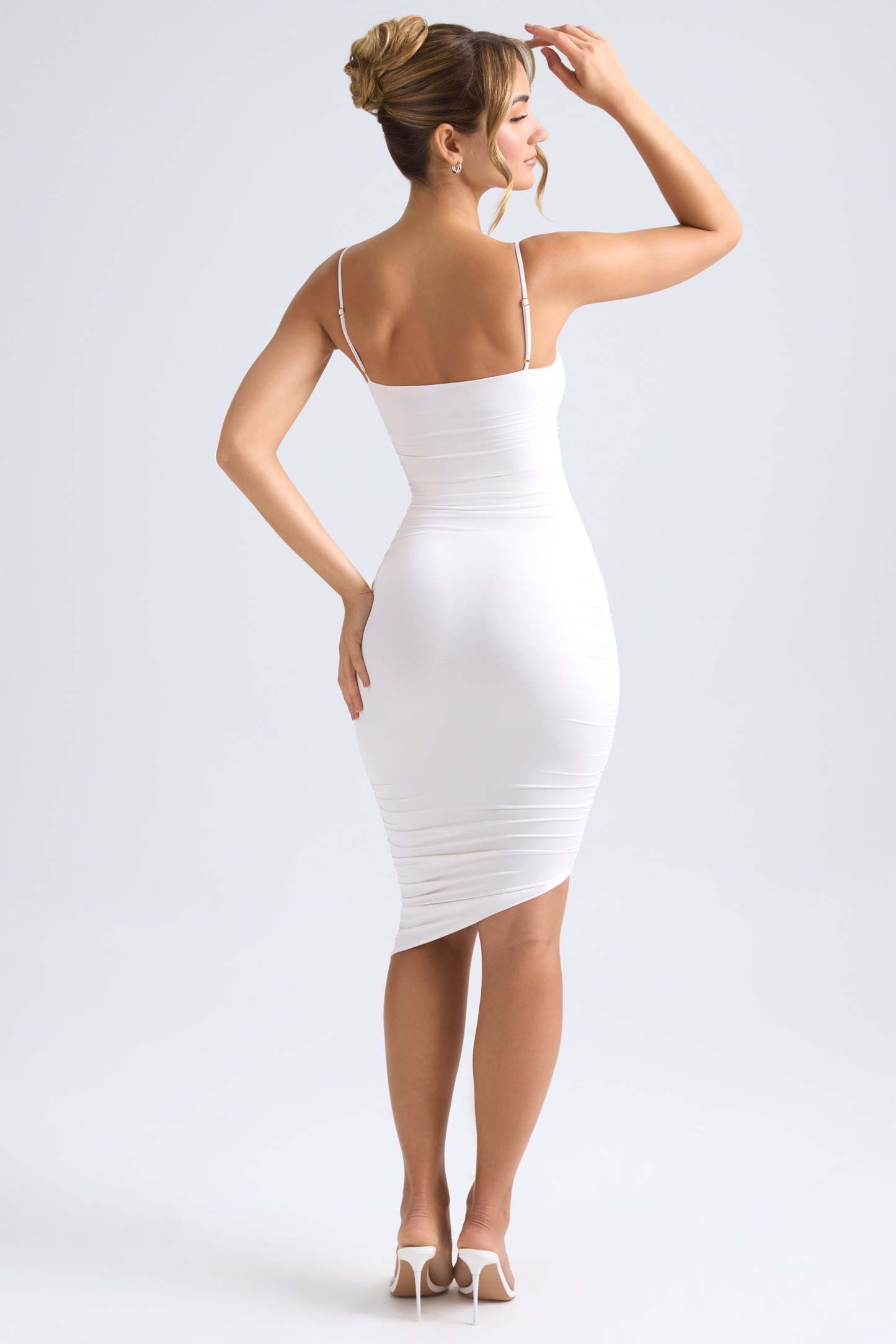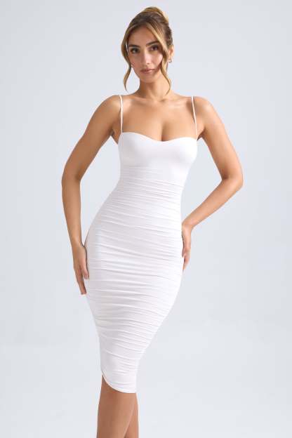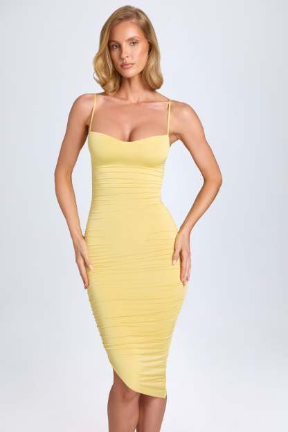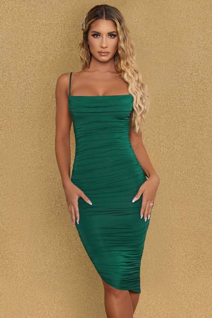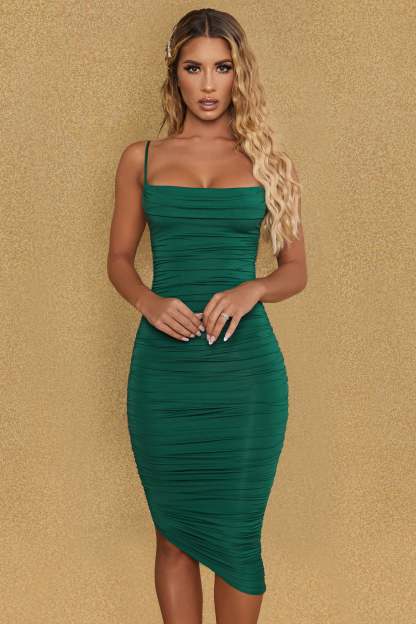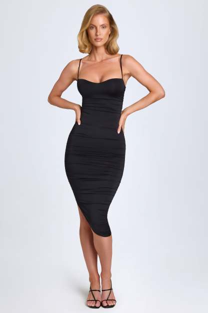 A style you’ll reach for time and time again, the Anaisa midi dress is crafted from premium and lightweight slinky stretch jersey that sculpts to your figure. It’s cut to an asymmetric bodycon silhouette and enhanced with intricate ruching that draws attention to the shaped sweetheart neckline.