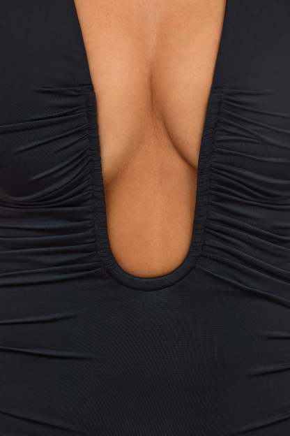 Experience love at first wear with the Alena mini dress. Perfectly designed to define and highlight your curves, it’s crafted from premium sheer jersey with just the right amount of stretch and is elevated with all-over ruching for a comfortable bodycon fit. It’s framed with a structured U-shape neckline and halter straps for extra support.