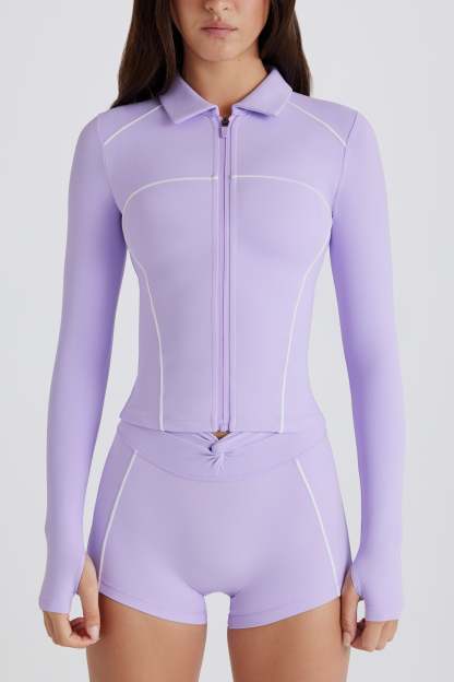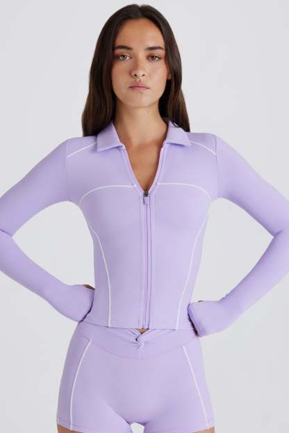 Sporty staples, luxe details. Made from our buttery smooth, lightweight and breathable Soft Active fabric, you won’t find anywhere else, this zip-up jacket is cut to a second-skin silhouette that comfortably cinches for a supported feel all day long. It’s elevated with contrast piped trims that create a sculpting effect, and it features a collared high neck.