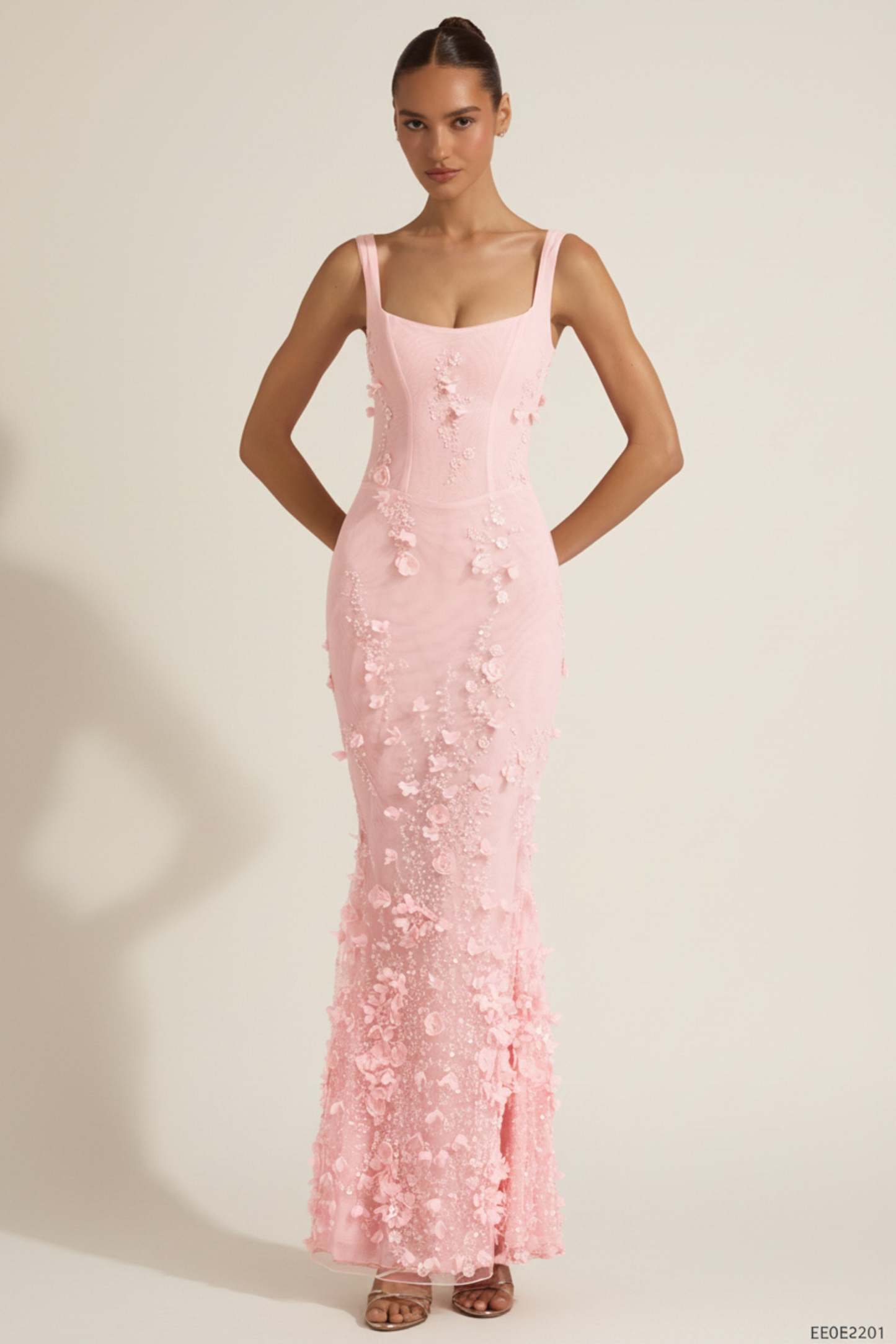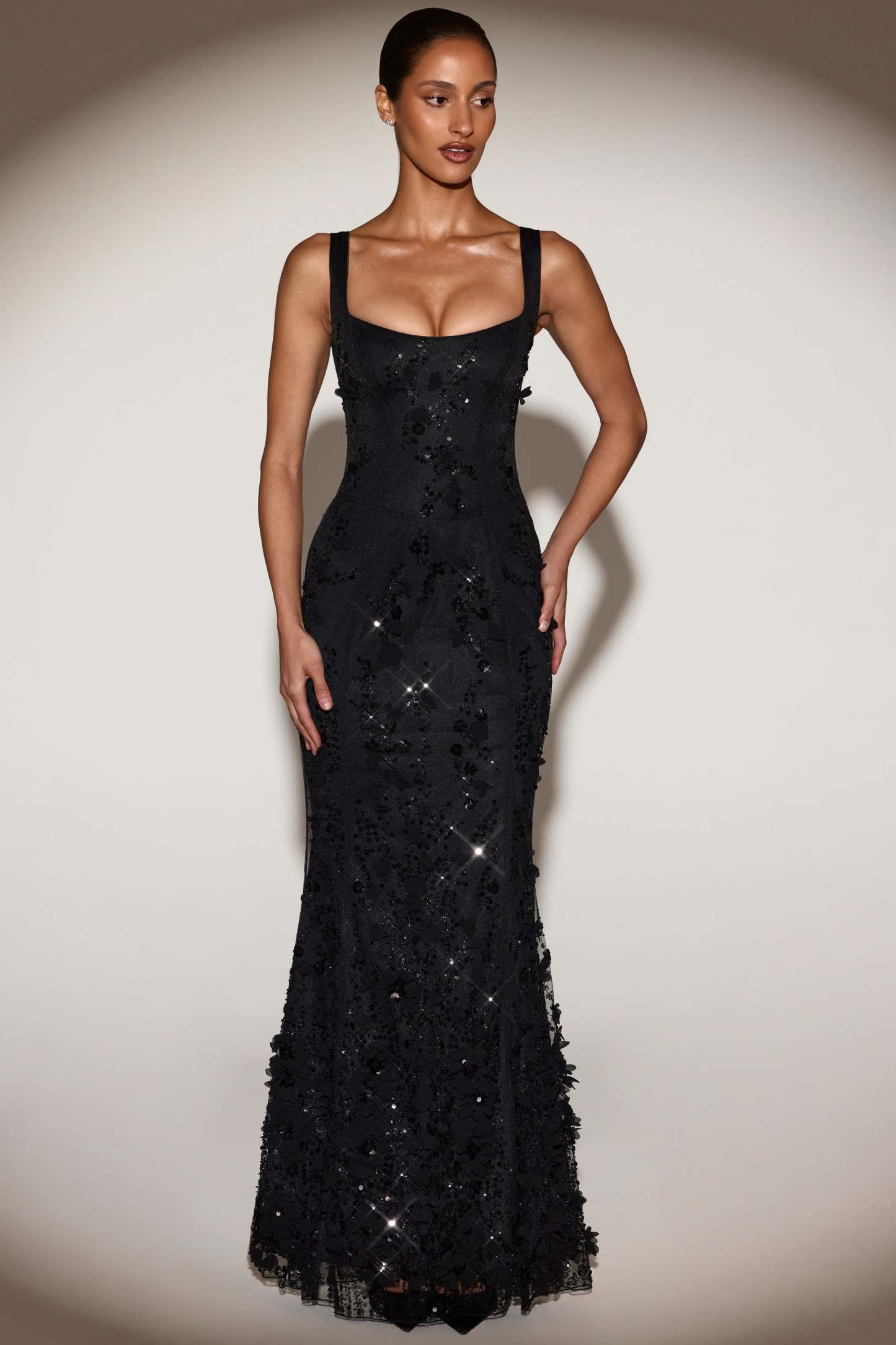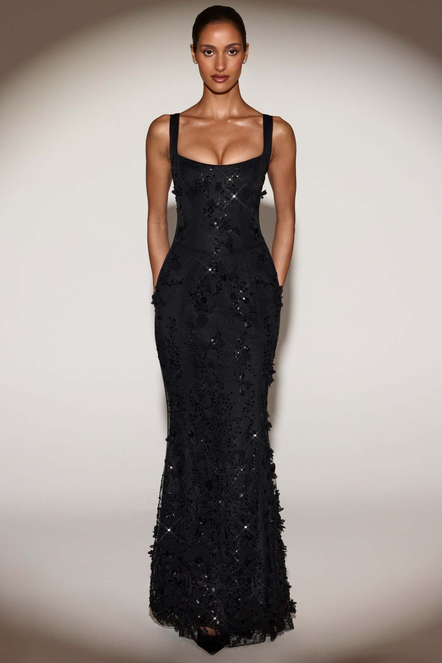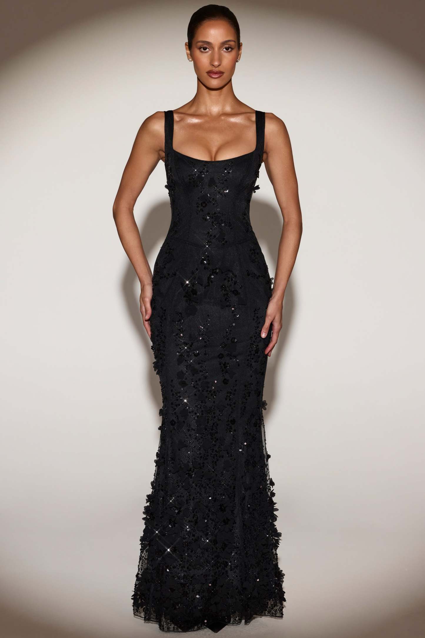 Wearable works of art for your most special occasions, the Vasanta gown is adorned with delicate tonal floral appliqués brought to life with perfectly placed sequin embellishments. It’s crafted from lightweight, premium mesh that hugs your curves and is lined with jersey for a non-restrictive sculpting effect. It’s cut to a classic fishtail silhouette with lace-up detailing at the back and adjustable straps for your perfect level of support.
