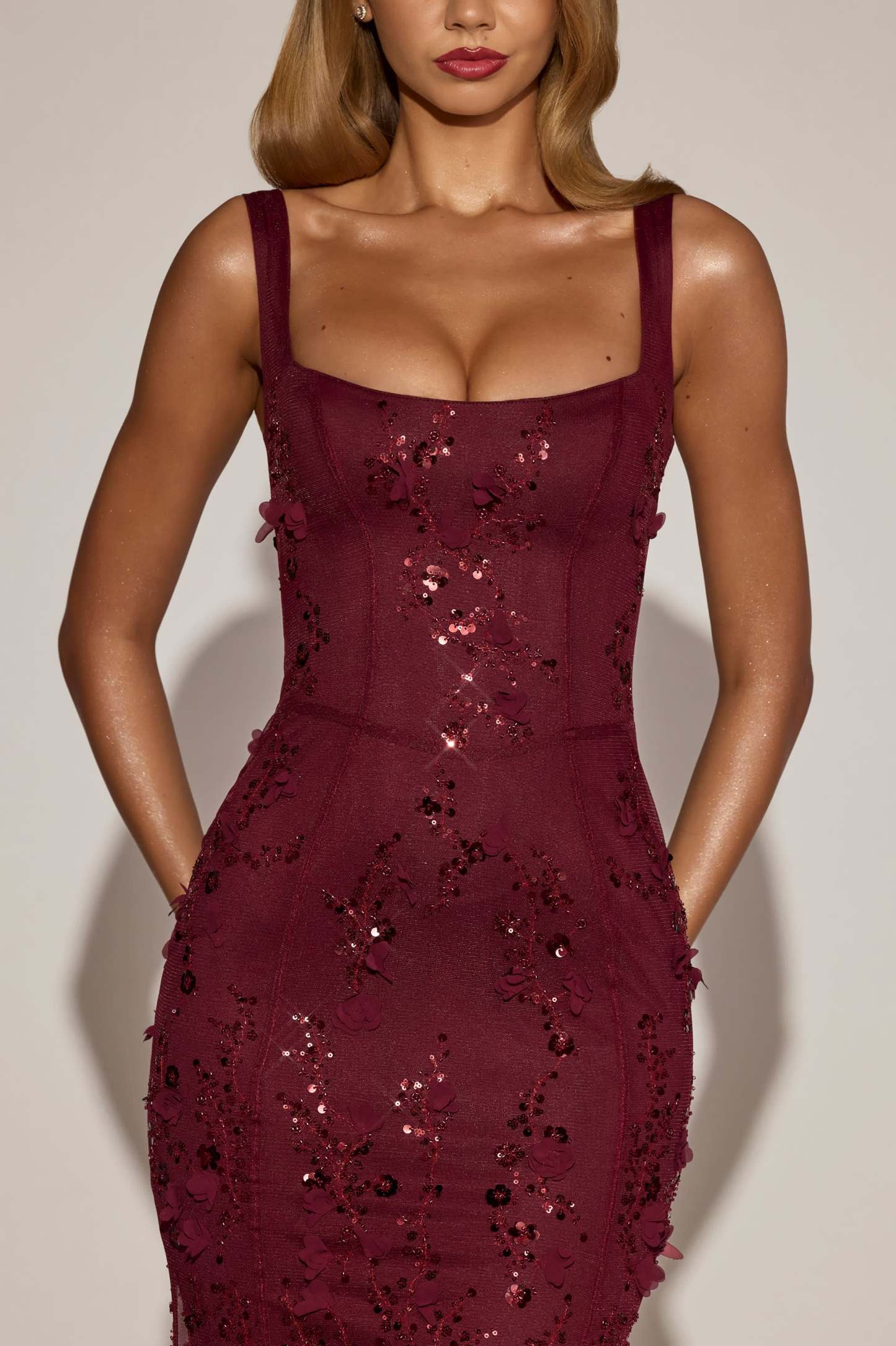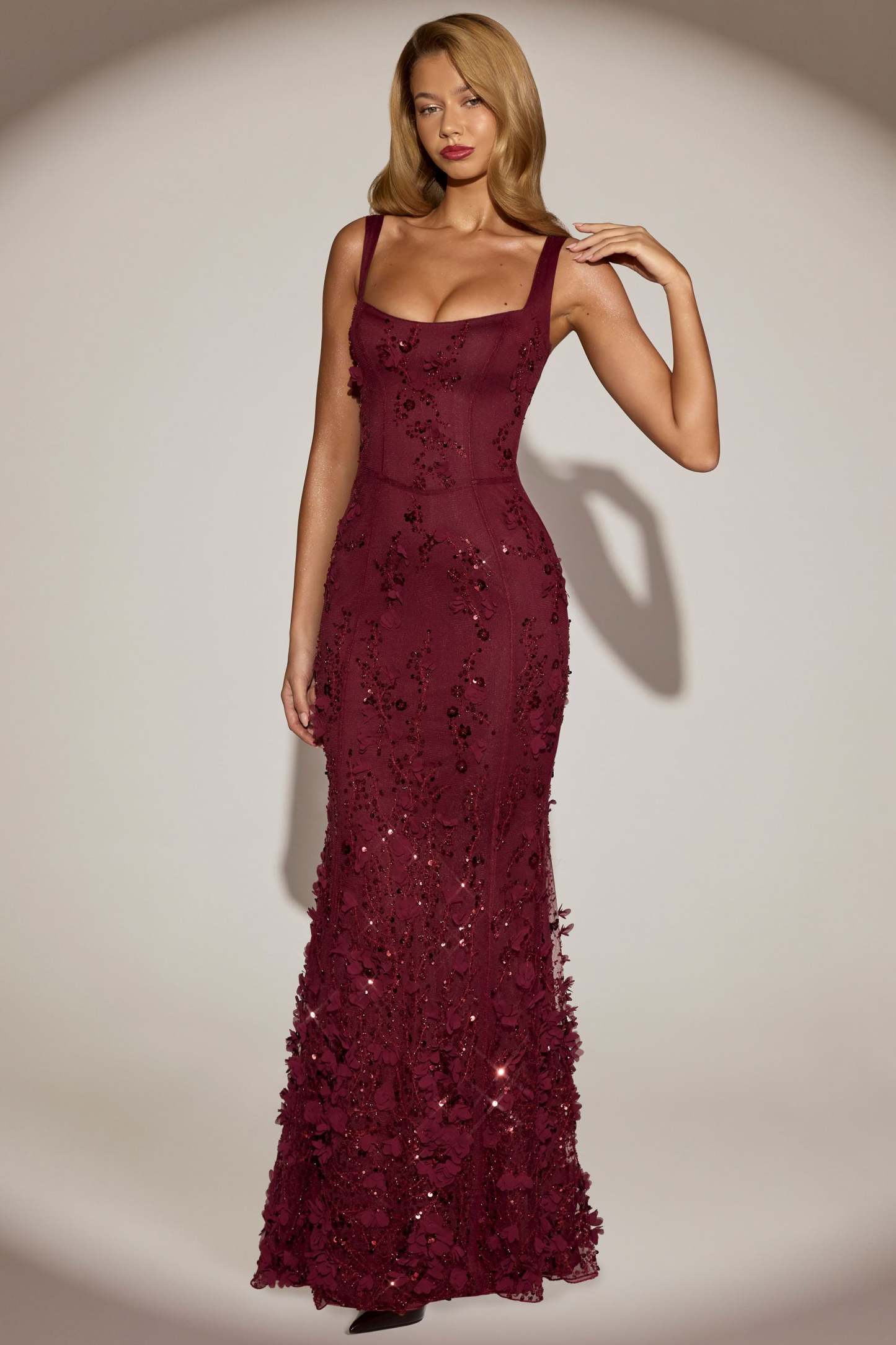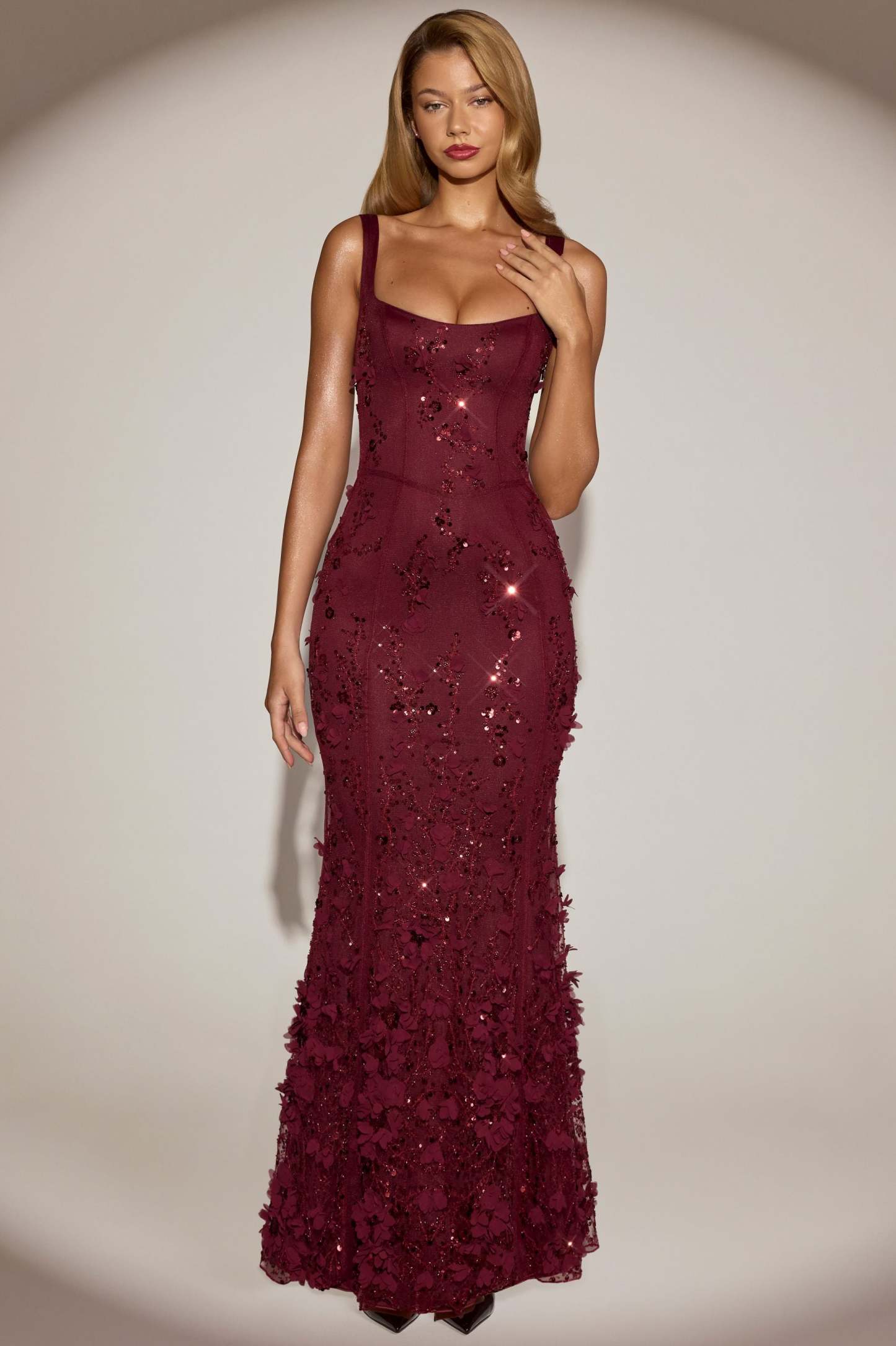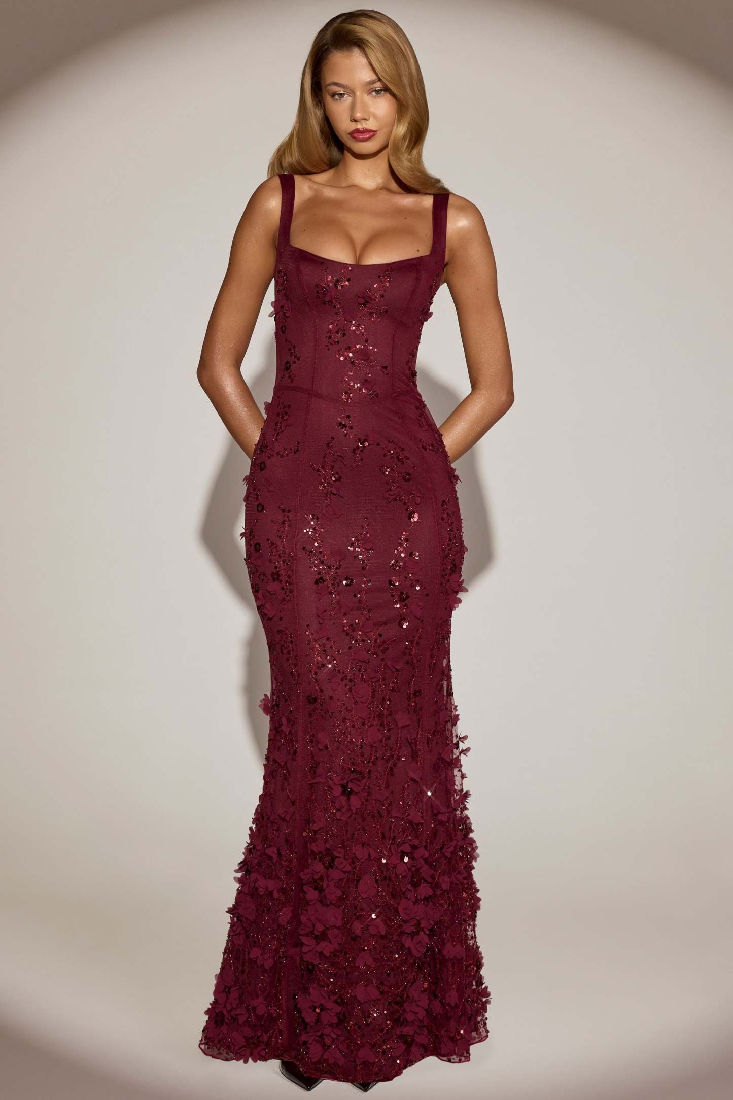 Wearable works of art for your most special occasions, the Vasanta gown is adorned with delicate tonal floral appliqués brought to life with perfectly placed sequin embellishments. It’s crafted from lightweight, premium mesh that hugs your curves and is lined with jersey for a non-restrictive sculpting effect. It’s cut to a classic fishtail silhouette with lace-up detailing at the back and adjustable straps for your perfect level of support.