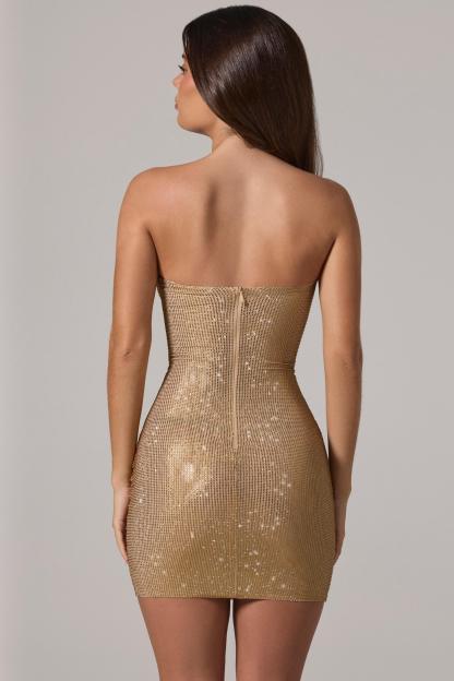 Embellished Bandeau Cowl Neck Mini Dress in Gold